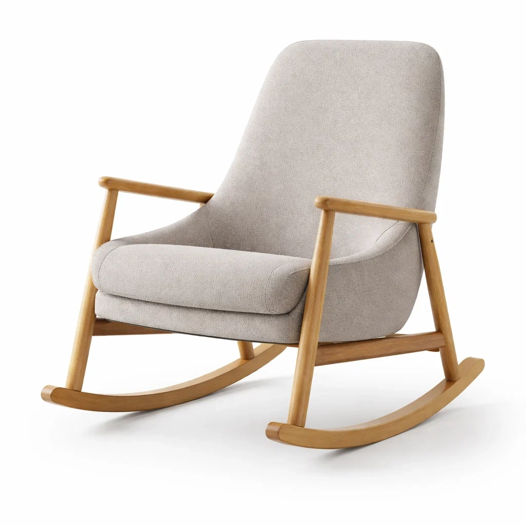 Fauteuil à bascule en tissu avec pieds en bois et métal
