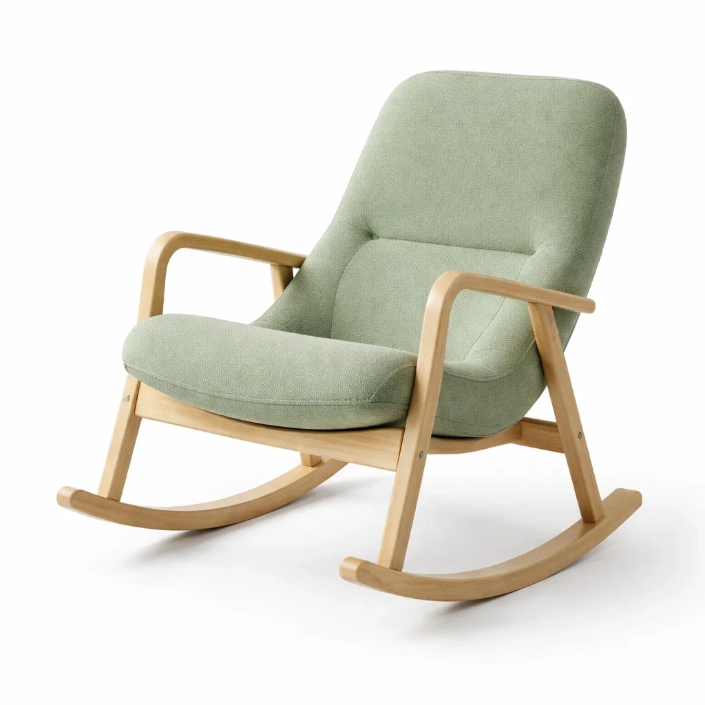 Fauteuil à bascule en tissu vert olive avec cadre en bois de hêtre