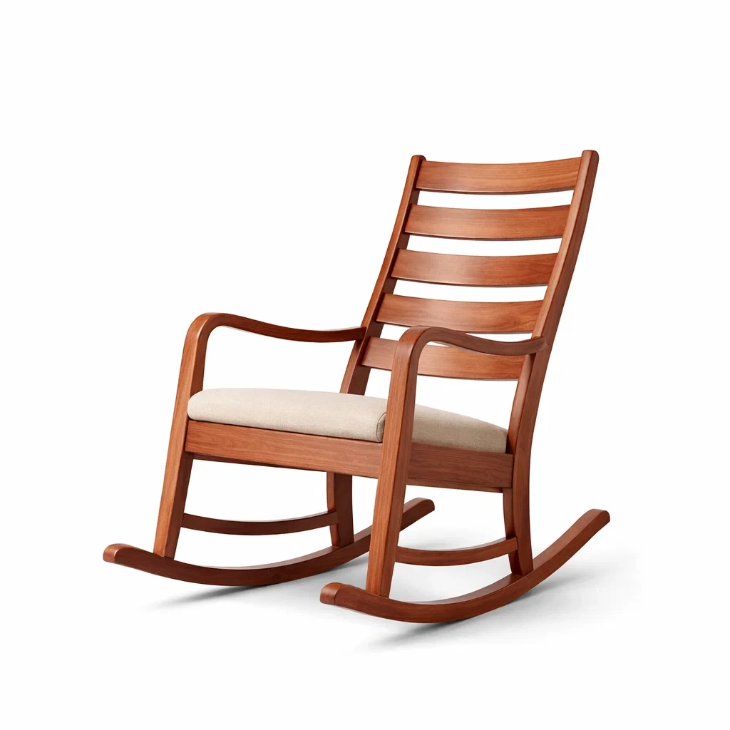 Fauteuil à bascule en bois avec coussins en polyester beige