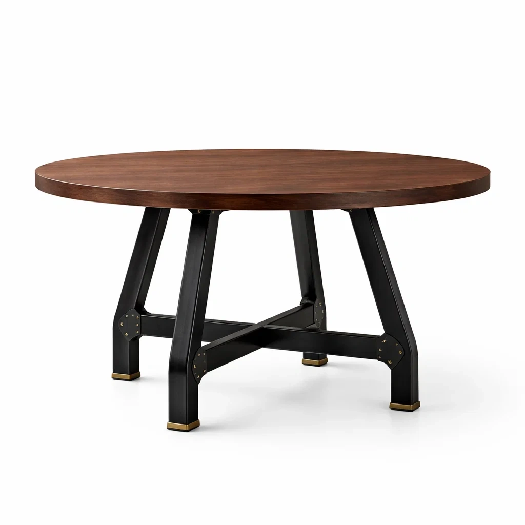 Table à manger rectangulaire en bois de chêne avec base en métal noir