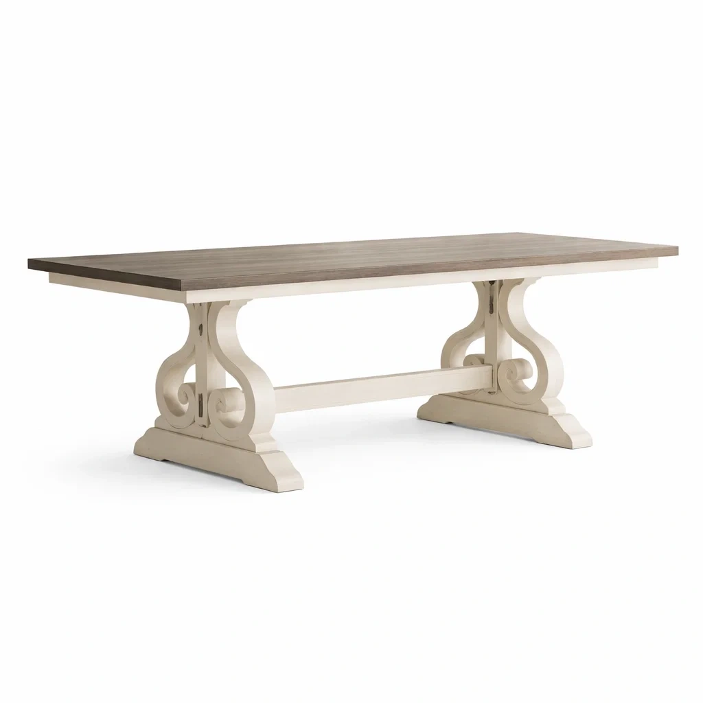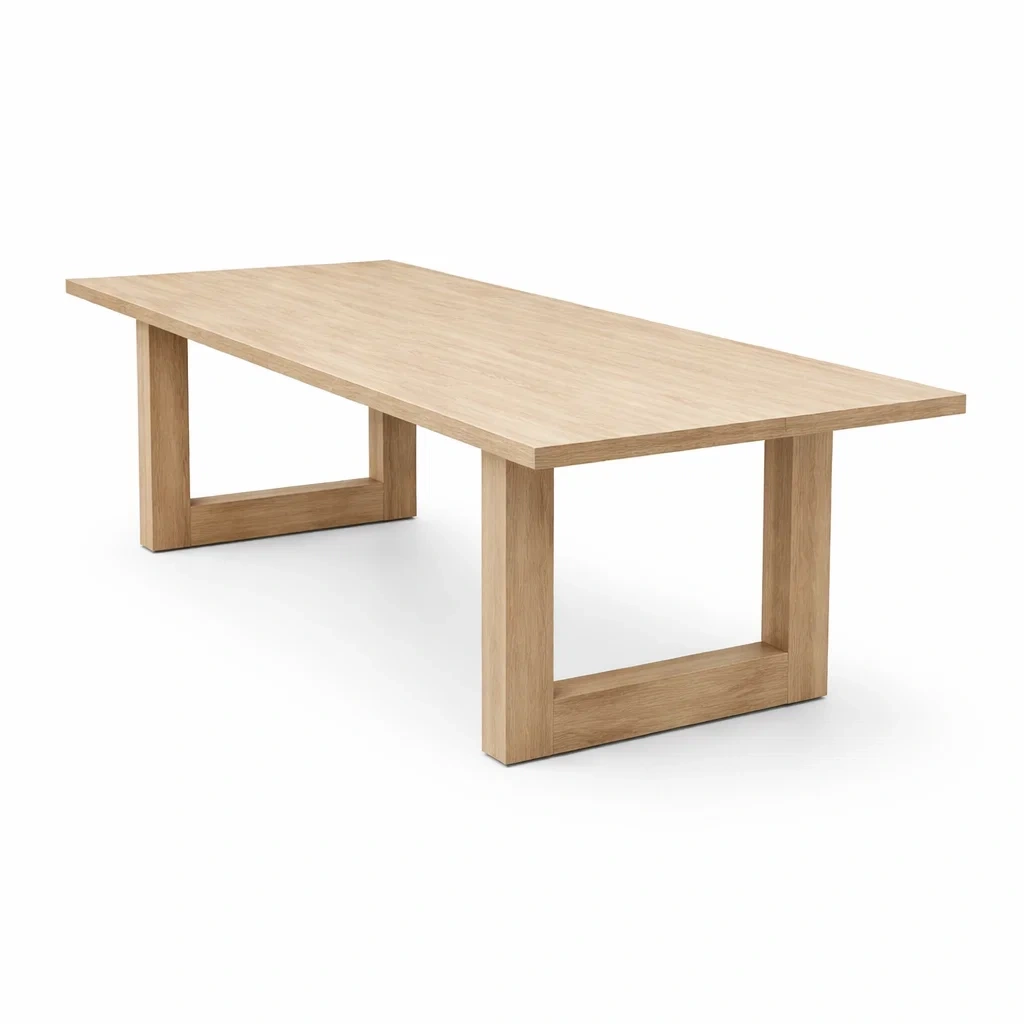 Table à manger rectangulaire en bois de chêne avec base en bois gris