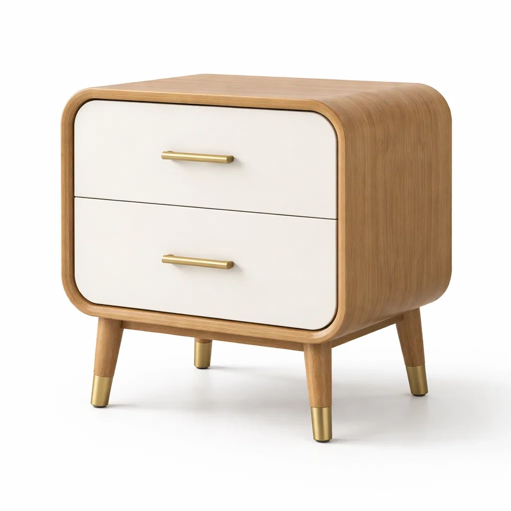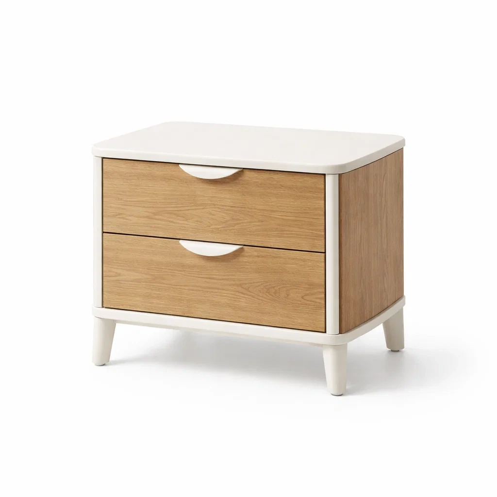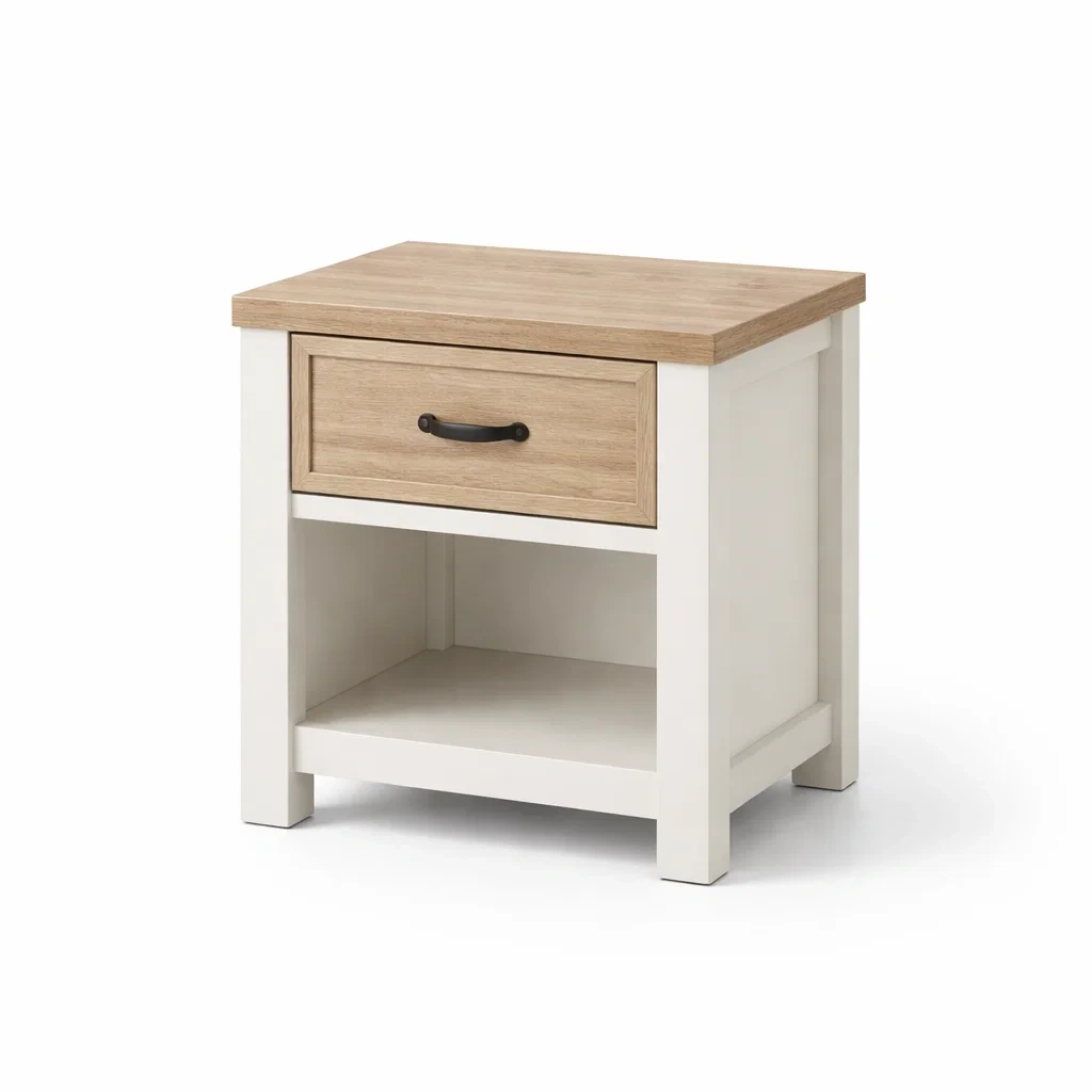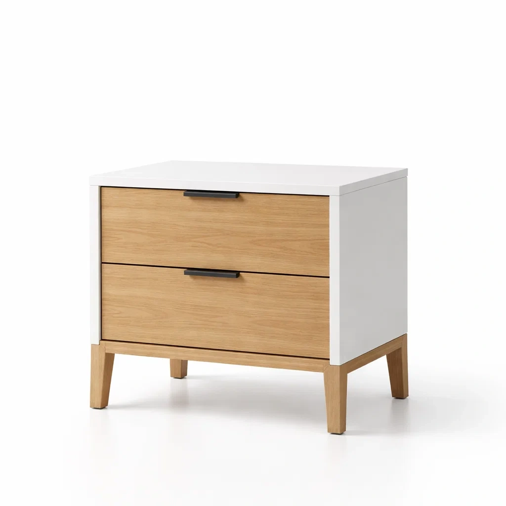 Bois Blanc et Chêne Table de chevet avec Tiroirs