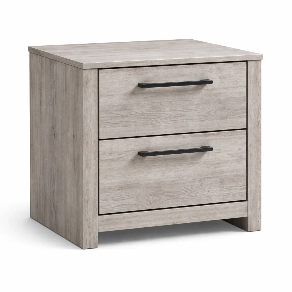 Bois Gris Table de chevet avec Deux Tiroirs