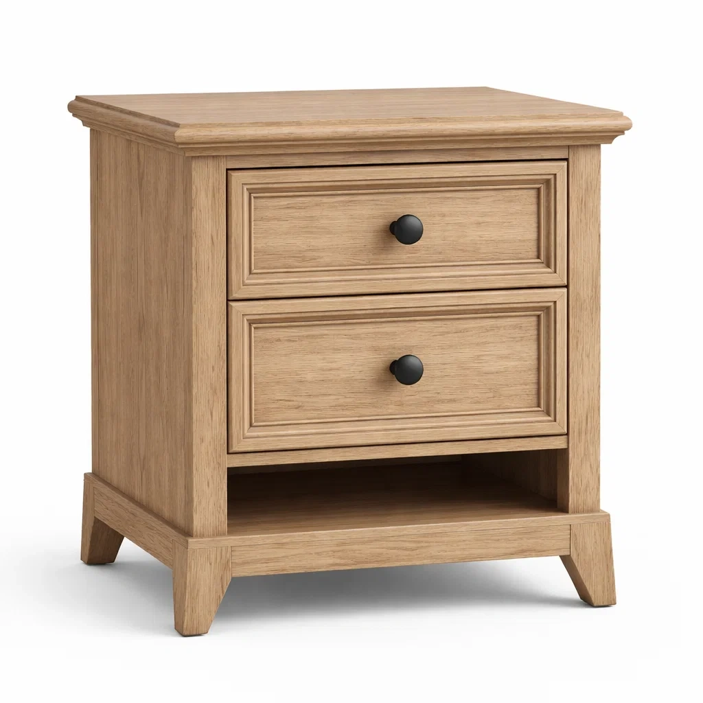 Bois Chêne Naturel Table de chevet avec 2 Tiroirs