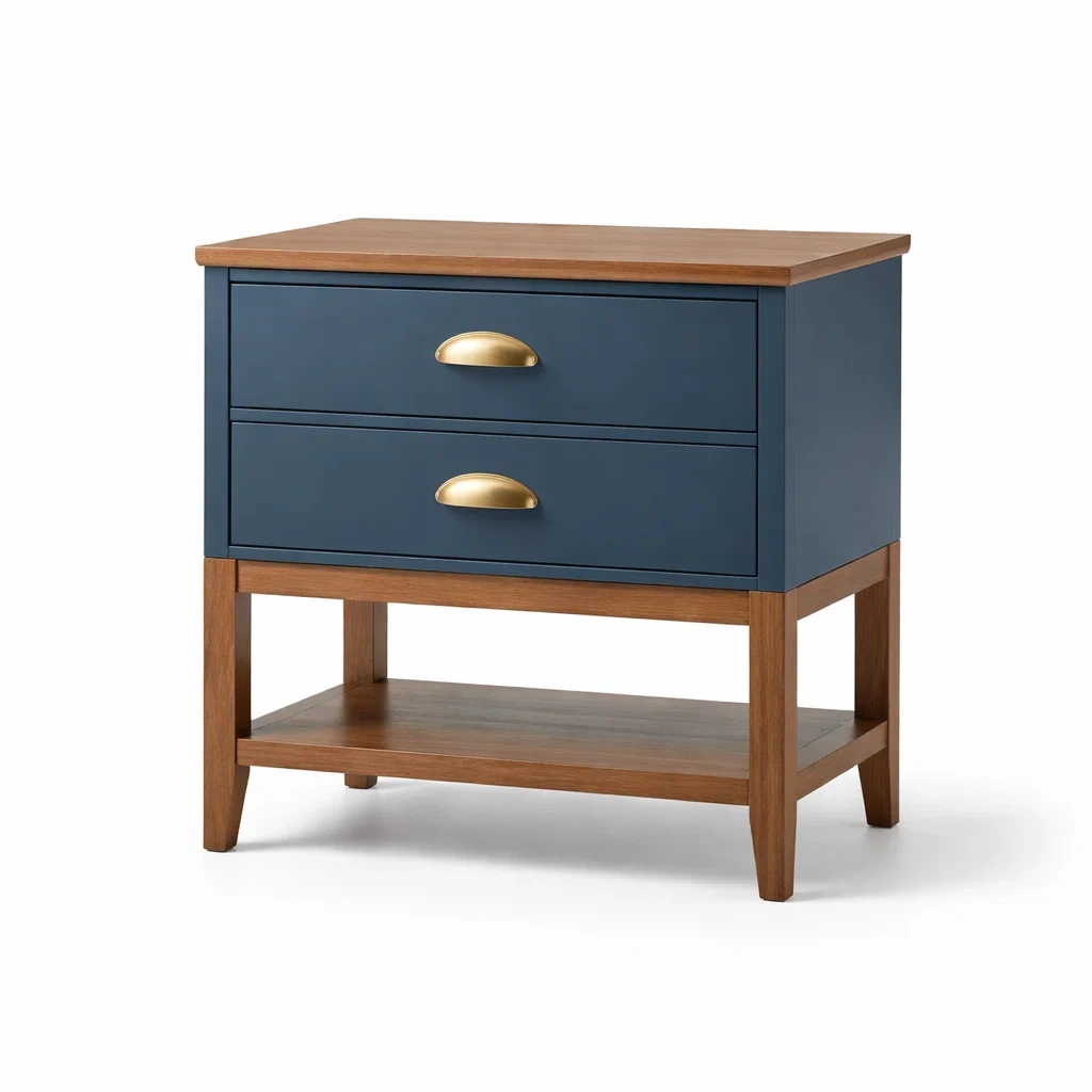 Bois Table de chevet avec Tiroirs en Métal Bleu