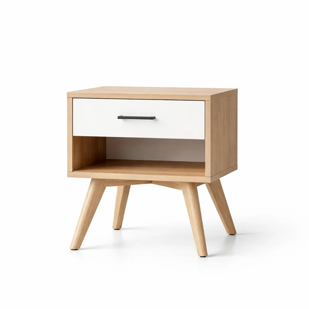 Bois Blanc Table de chevet avec 2 Tiroirs et Étagère