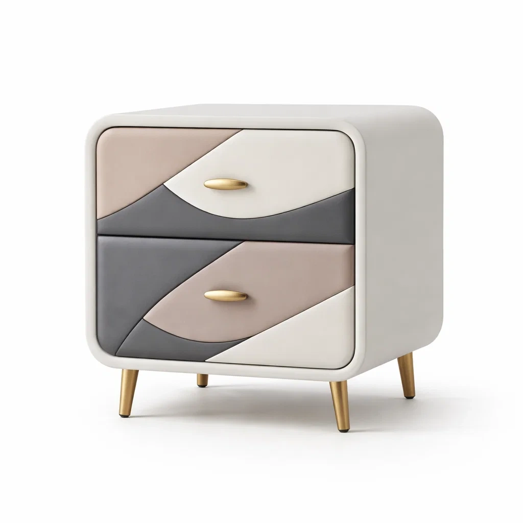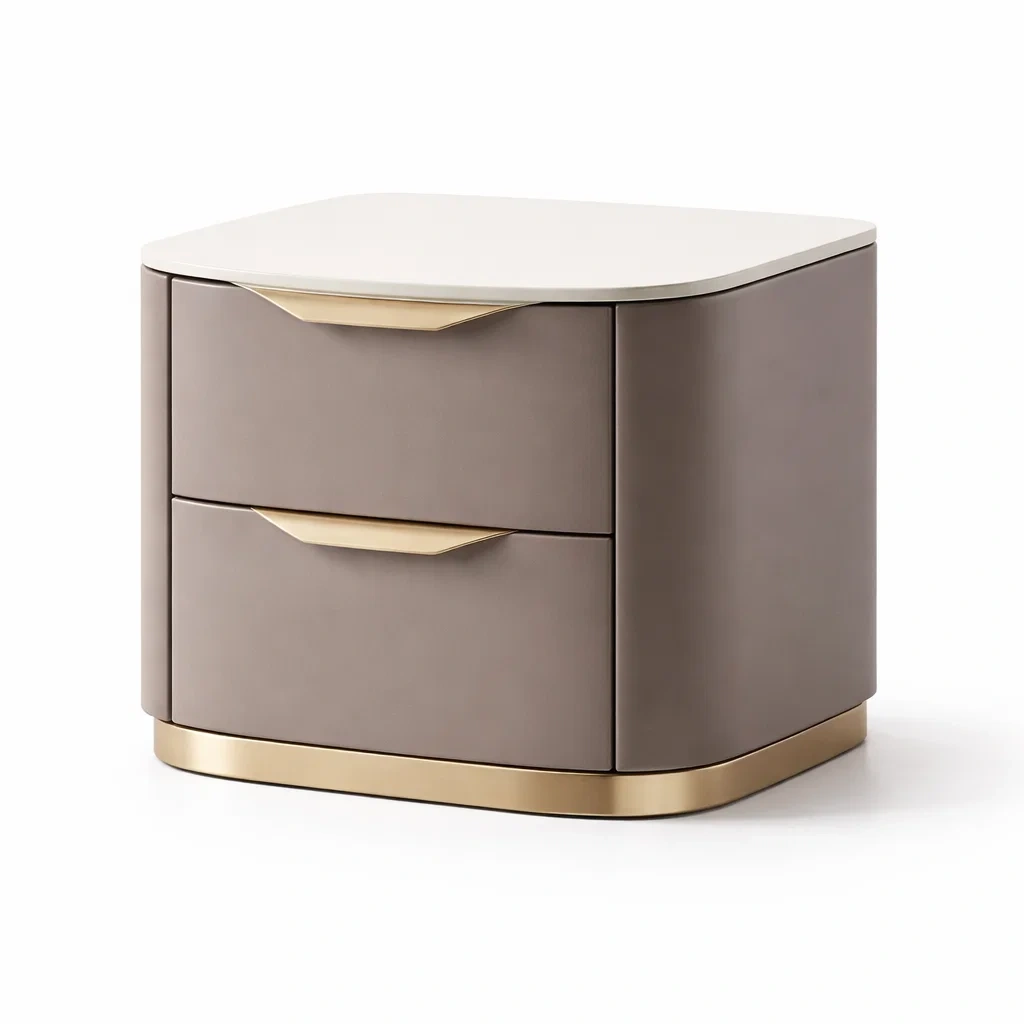 Métal et Similicuir Beige Table de chevet avec Deux Tiroirs
