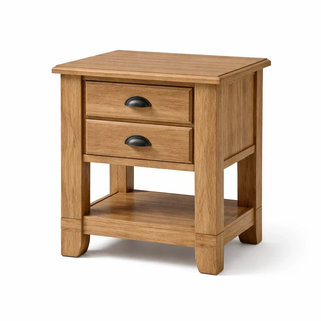 Bois de Chêne Table de chevet avec 2 Tiroirs