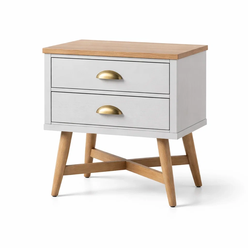Design : 2 tiroirs, pieds inclinés