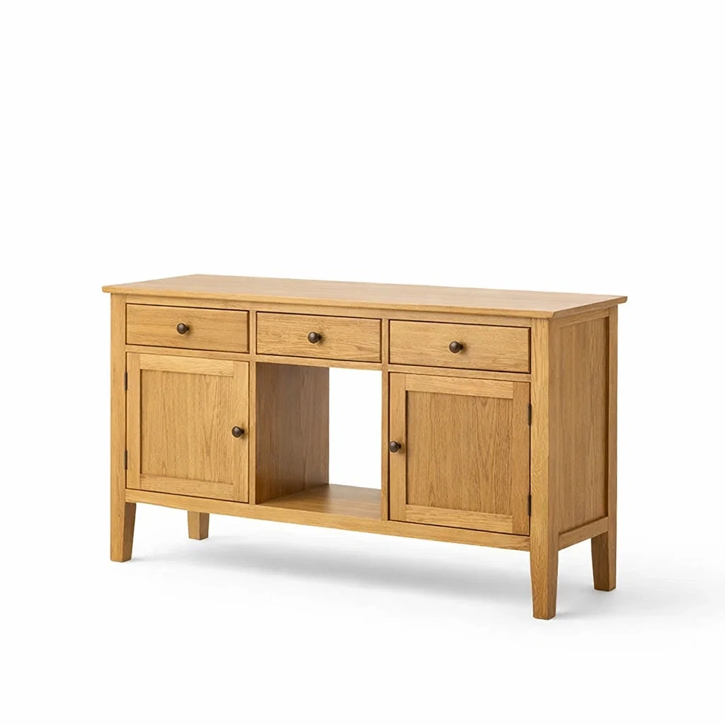 Le buffet est fabriqué en chêne massif avec une finition en vernis transparent.