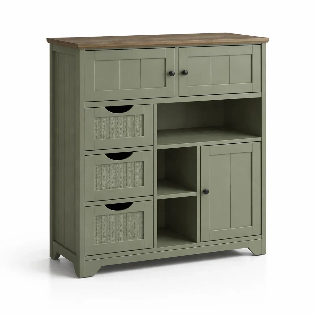 Stockage : 3 tiroirs, 2 étagères, 2 portes