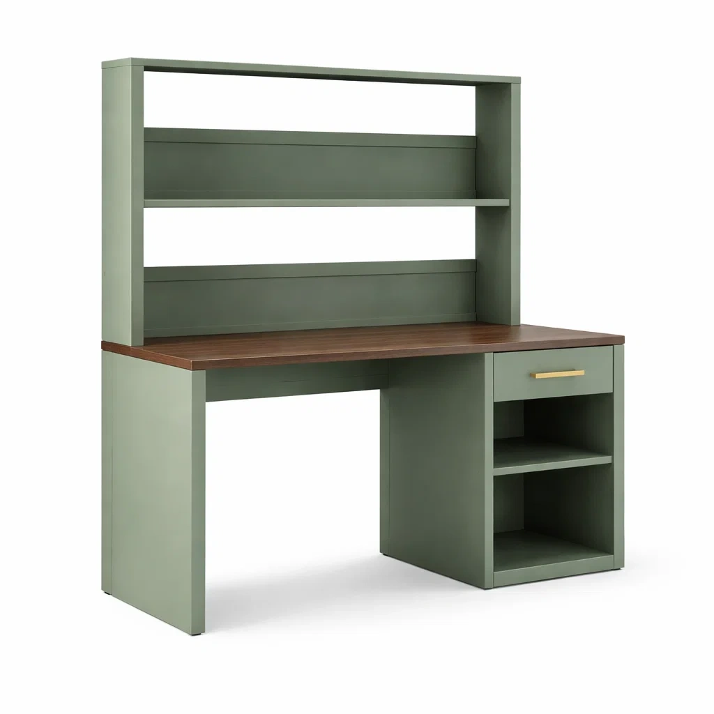 Bureau en bois avec étagère verte