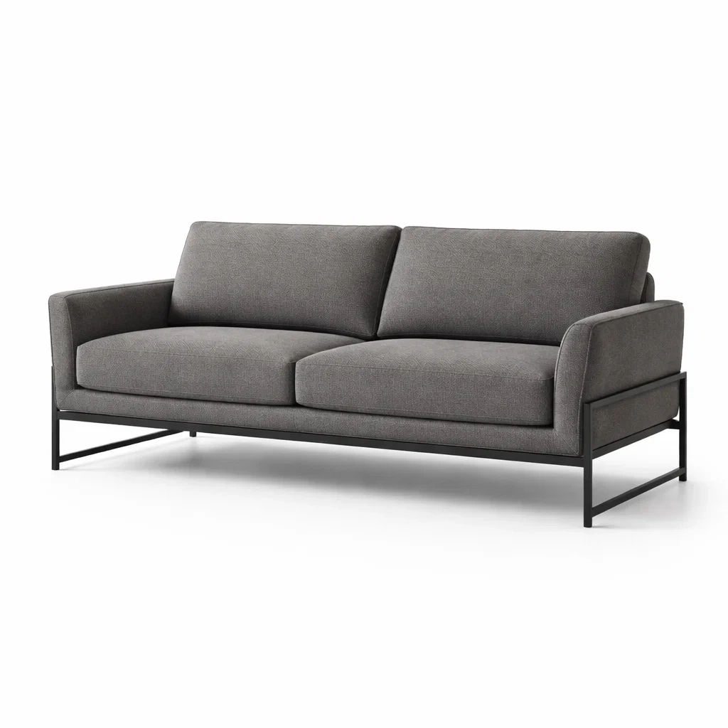 Ce canapé 3 places est doté d'une structure métallique robuste et d'un revêtement en tissu polyester. Les dimensions sont de 210 cm de longueur, 80 cm de largeur et 85 cm de hauteur, avec une hauteur d'assise de 45 cm et des accoudoirs de 60 cm. Le rembourrage est en mousse pour un confort optimal. Le poids net est de 40 kg. Les accoudoirs sont rembourrés et le dossier est fixe. Le tissu en polyester est résistant. Le montage est requis et les instructions sont fournies.