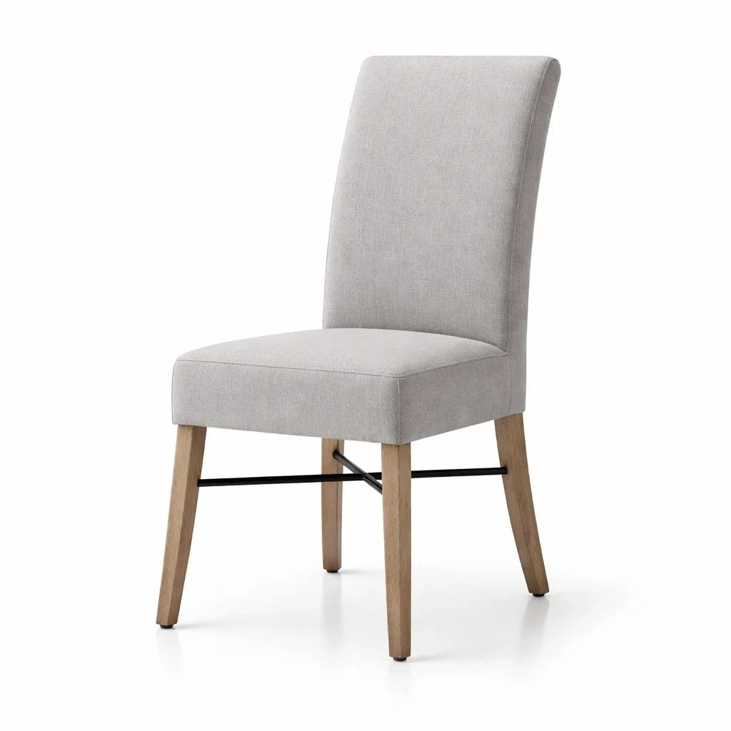 Matériaux : Revêtement en tissu polyester pour l'assise et le dossier, cadre en chêne massif.