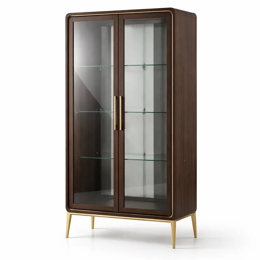 Matériaux : Structure en bois d'ingénierie, portes en verre trempé de 5 mm, pieds en acier plaqué or.